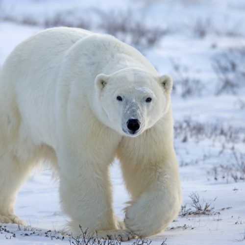 Experience one of the world’s most wonderful natural phenomena — the annual polar bear migration on the coast of Hudson Bay. The world’s largest polar bear denning area is 40 km southeast of Churchill and has been protected in Wapusk National Park. The bears occupy this area through the summer and early fall. With October’s snow and approaching winter, the polar bears start to migrate north to Churchill and wait for the ice to form on Hudson Bay where they spend the winter hunting seals. Therefore, late October and early November are the prime viewing weeks and polar bear sightings are at their peak. Come to Churchill and experience this amazing opportunity with polar bears!