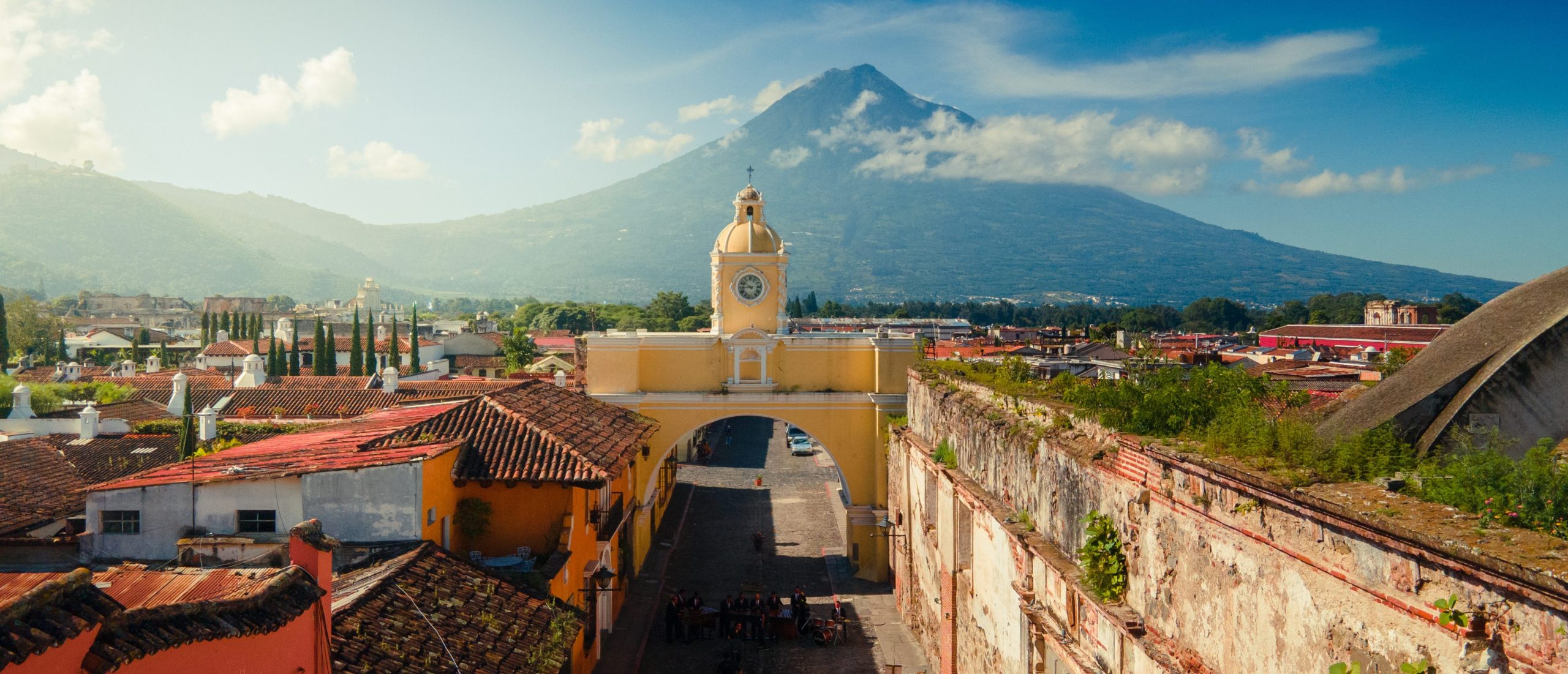 Photo Credits: Adobe Stock (Antigua Guatemala, Lake Atitlán) and Wikimedia (Tikal National Park).