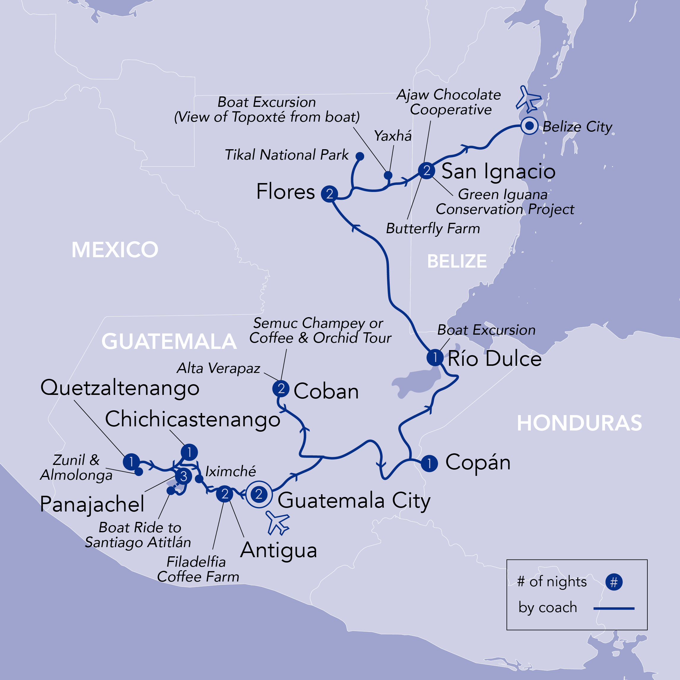 Flight upgrades: Please enquire about current prices for upgrades on the flights to Guatemala City and return from Belize City. Premium economy and business class may be available.
