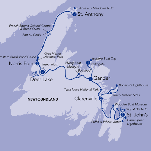 Note: This in-depth tour is devoted to the Island of Newfoundland. Labrador is part of the Province of Newfoundland, but is not included due to the additional time required.