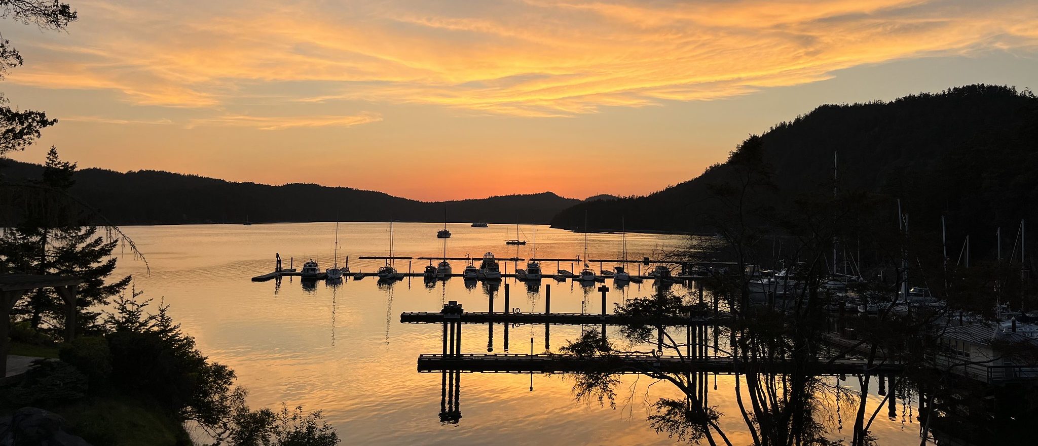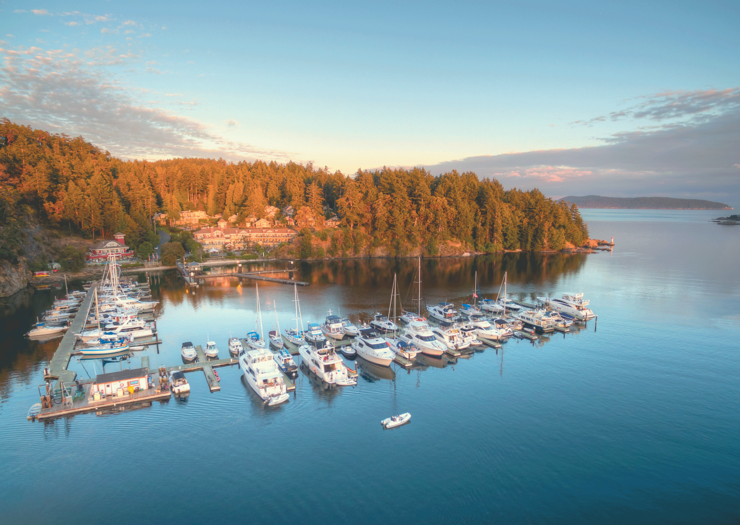 POETS COVE RESORT: Poets Cove is the luxury resort of the Gulf Islands. Nestled in Bedwell Harbour on South Pender Island, the resort has every amenity you could wish for. It was built in 2004 at a cost of $30 million. The main building has 21 beautifully appointed bedrooms, all with ocean view and a deck. There are also spacious twobedroom cottages and villas with a living room and two bathrooms which are suitable for four double/twin guests sharing or two single guests sharing (please request pricing). The Aurora Dining Room serves our breakfasts and dinners, and Syrens Bistro offers a pub atmosphere for casual evening get-togethers. Spa treatments are available in the Susurrus Spa and there is leisure time to enjoy this service. Advanced booking is recommended: 250-629-2113 or 250-629-2100. An outdoor pool and hot tub are tucked into the hillside above the lodge.