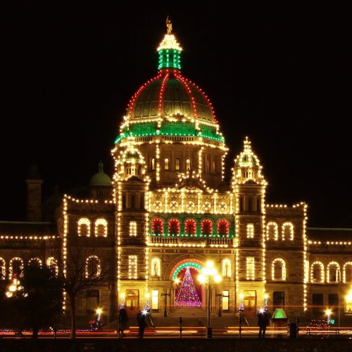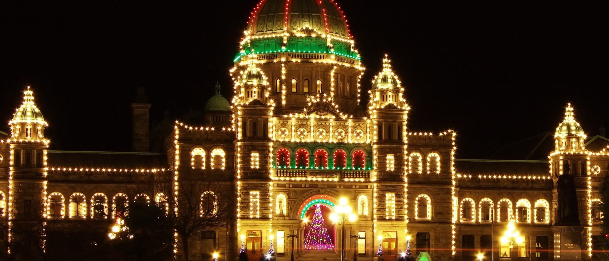 Photo Credits: Merridale Cidery, Arts Club (A Wonderhead’s Christmas Carol), Destination Greater Victoria (Legislature in Victoria), Pexels (Christmas Tree), Adobe Stock (Inner Harbour), and Butchart Gardens.