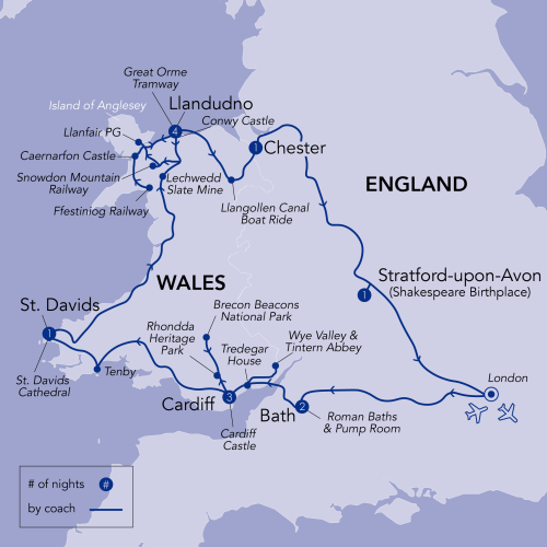 Tour director & guides: A Wells Gray tour director accompanies you throughout the tour. A British guide is with you for 13 days in Wales and England. Local guides are hired for some cities to provide in-depth commentary and a regional insight.